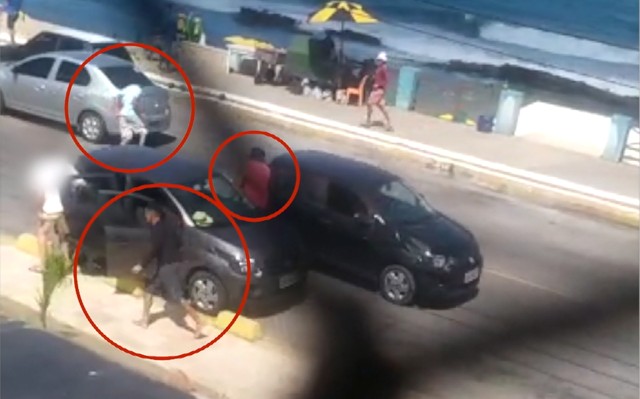 De acordo com o capitão Carlos Farias, da Companhia de Turismo, a PM realizou várias diligências após o crime e conseguiu encontrar o carro usado pelos criminosos, que é visto na filmagem, no bairro Santos Reis.